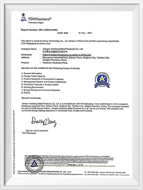Jiangsu Aozheng Metal Products co., Ltd.